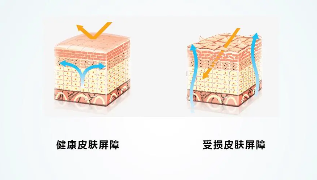 要想皮肤好,就要明白这些皮肤的构造和养肤逻辑。皮肤屏障的养不好,人体和皮肤中的水分就会过多散失,成年人24h内通过皮肤丢失的水分为240~480mL(不显性出汗),如角质层全部丧失,水分经皮肤外渗丢失将增加10倍或更多。